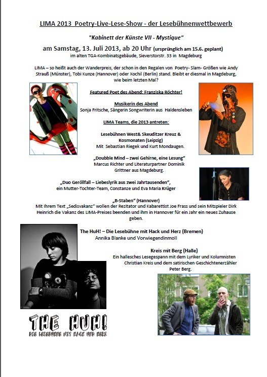 21.- 28.09.2017 Teuto 52/8 3-teilige Lesungsreihe in Bielefelder Ateliers im Rahmen des lila:we- Literaturfestivals hier! Komplettes Programm s. hier